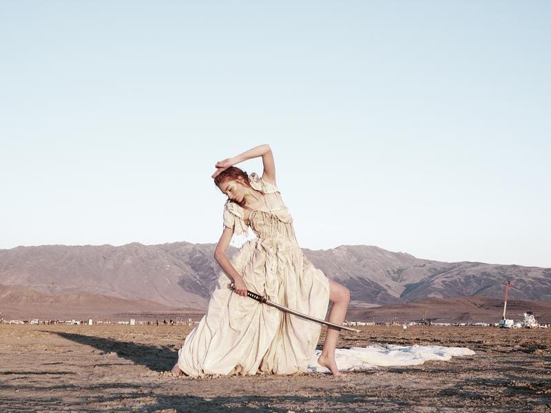 A participant poses on the playa. The Spanish word for beach, playa is also used to describe the dry lake beds in America, such as those found on the Black Rock Desert.