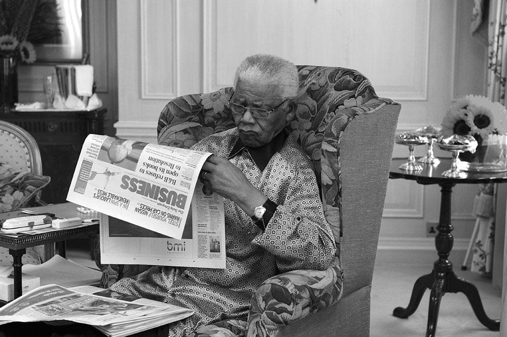 He recalls another picture of Nelson Mandela reading a newspaper on his 90th birthday: “I was his present from his foundation. He came to England for a week and I spent every day with him, in his hotel room or just following him wherever he went. When he was leaving, he gave me a little wave from the car, and I nearly burst into tears; I realised I’d been in the presence of a truly great man.”