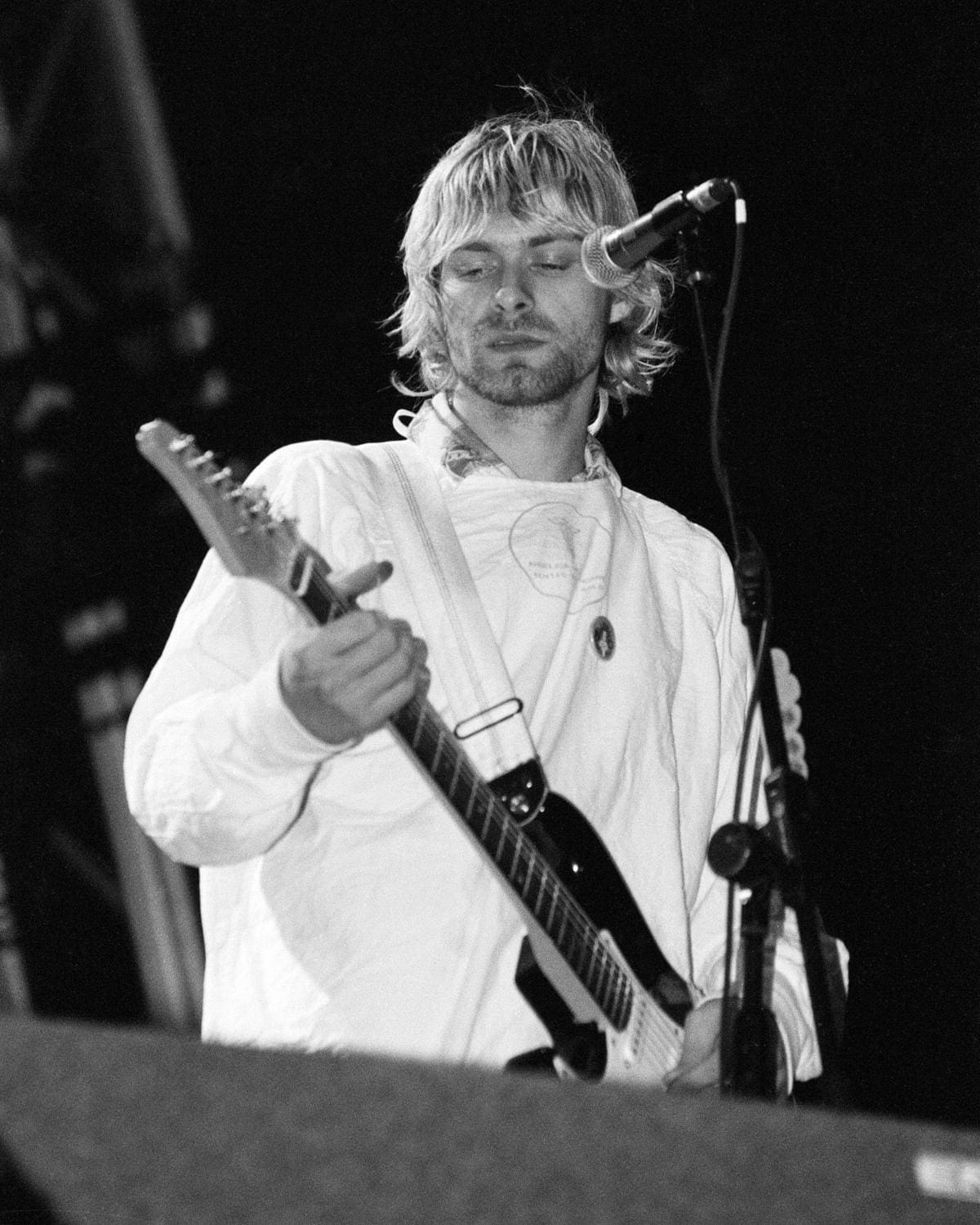 "Mocking rumours of his heroin addiction, Kurt Cobain was wheeled onstage in a wheelchair, wearing a surgeon’s smock and pretended to collapse on the floor before the first song had even begun"