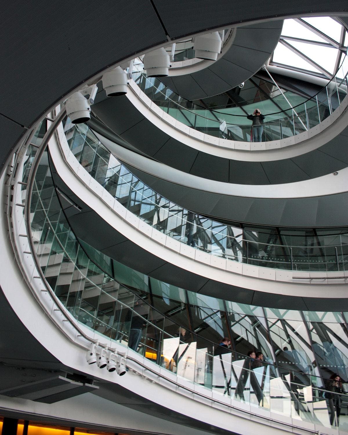 Variously nicknamed the ‘Helmet’, the ‘Glass Testicle’ (by Ken Livingstone), and ‘The Onion’ (by Boris Johnson), City Hall is certainly one of the more distinctive structures located along the River Thames. Designed by Norman Foster, its bulbous shape makes it instantly recognisable, especially against the backdrop of the neighbouring Tower Bridge. While its exterior divides opinion, few can argue against the spectacular staircase within – an endlessly winding orange peel of a design that you might recognise from productions as varied as The Apprentice and the 2015 James Bond film Spectre.