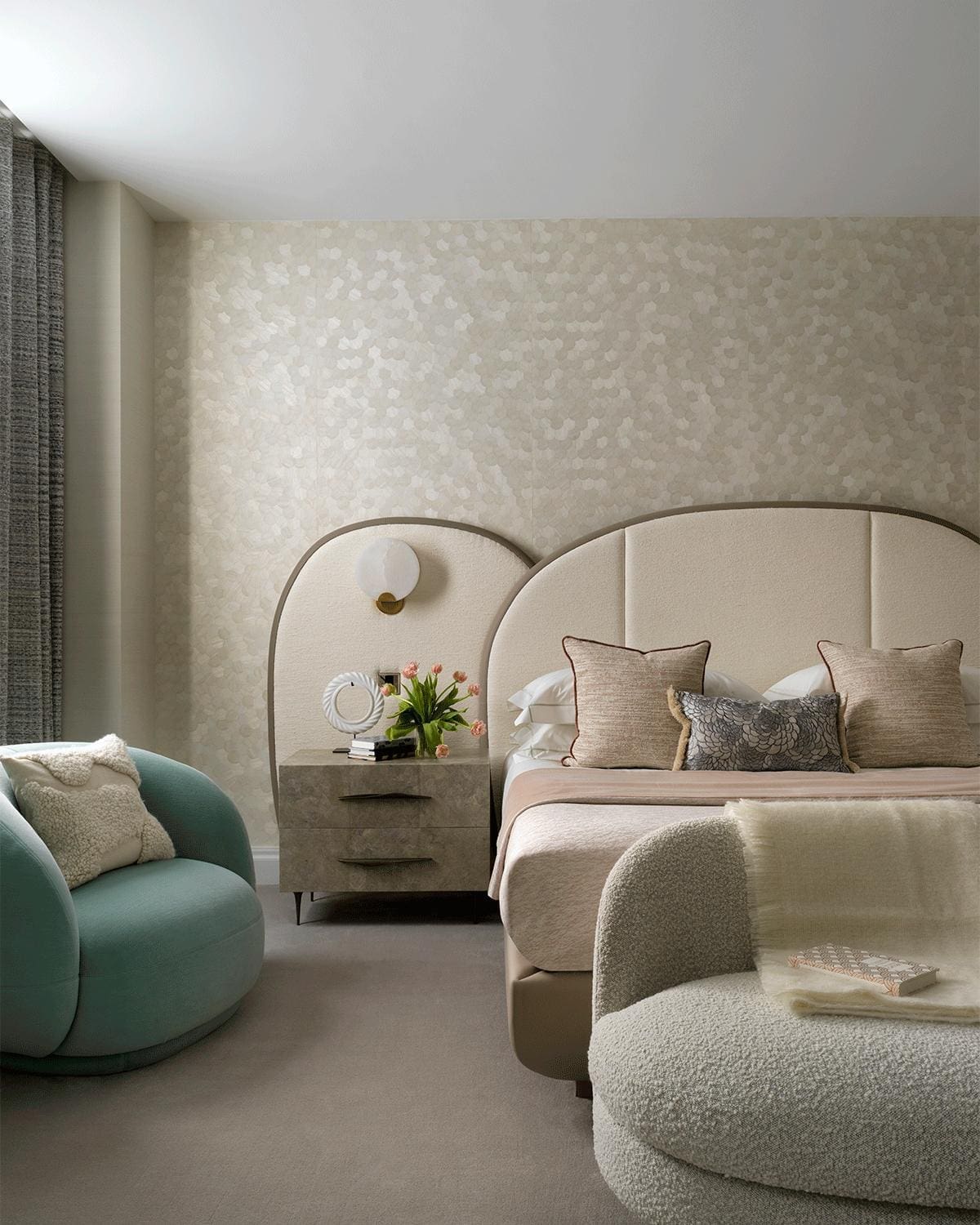 Jiin Kim-Inoue, Design Director at Finchatton, which masterminded the interiors at Twenty Grosvenor Square, the first-ever standalone Four Seasons Private Residences, has seen “an increased desire for playful shapes that embrace contours, curves and rounded features throughout the home. As the home is still everyone’s sanctuary in which to escape from the wider world, shapes with softer features and curves help to instil a sense of calm and comfort. We expect to see a rise in popularity for rounded, statement pieces such as sofas and headboards as well as dining tables.”