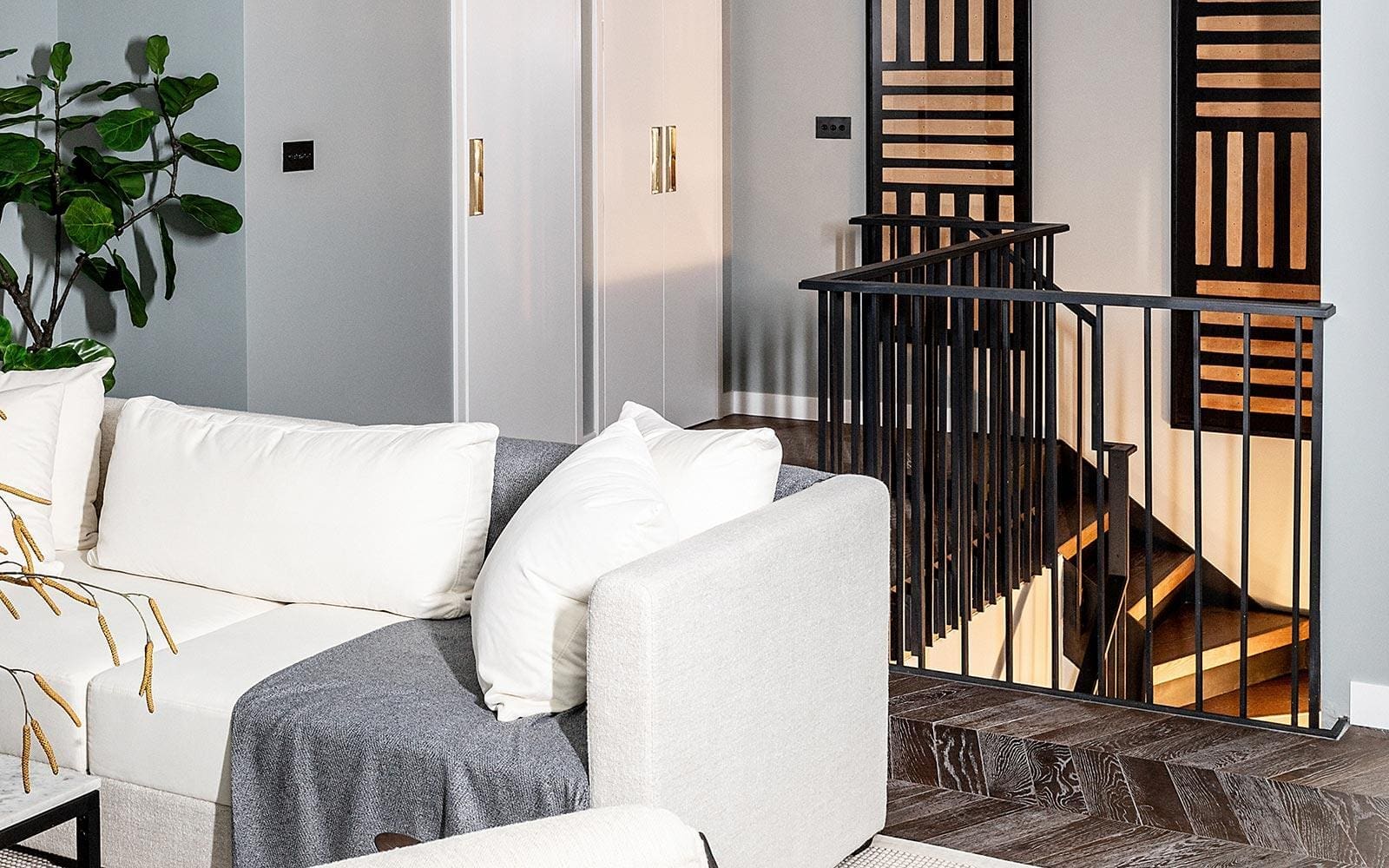 In addition to the historic apartments, Switch House East also offers modern duplex apartments, located in three floors that have been added to the top of the building.