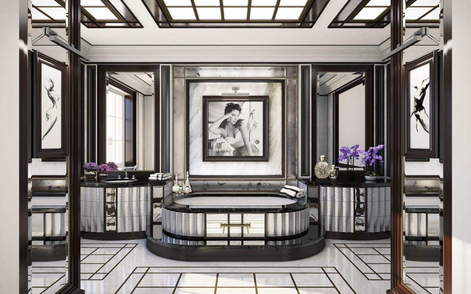 The suggested layout includes a master bedroom occupying the entire second floor, in addition to four further guest rooms and self-contained staff quarters with a commercial kitchen. Further ideas include a lavish dining area, a club room with media facilities, a gym and a mirrored whisky bar and humidor. The property also benefits from a lift to all floors and secure car parking, as well as a 143-year lease.