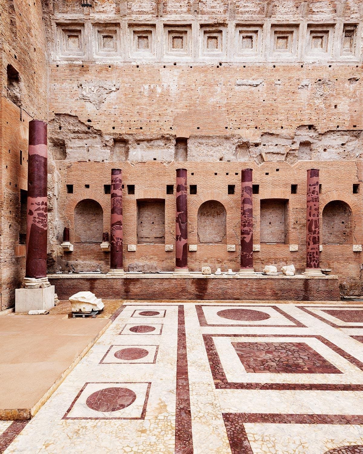 The monument was architecturally astounding. Its defining feature was two adjoining chambers containing statues of the deities; elsewhere, stuccos were covered in gold leaf and intricate busts peered out of niches. The mauve tint of the porphyry columns is still observable today – back then, it would have contrasted with green cipollino marble.