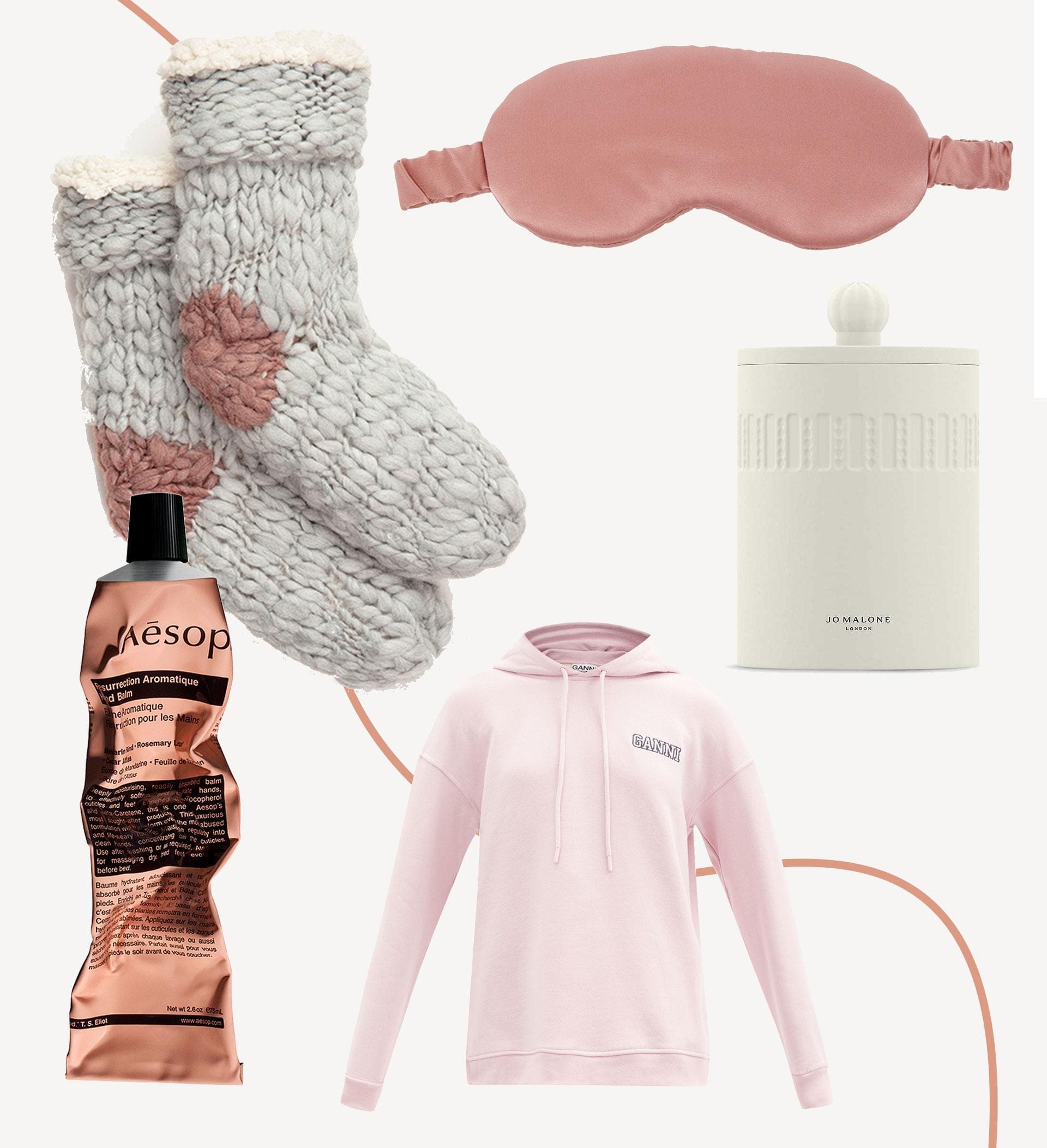 Ganni is the grand master supreme of oversized Peter Pan collars and gingham maxi dresses, but with little occasion to wear such finery (a collar seems positively formal these days) the brand has turned its hand to loungewear. Tapping into the logo trend, Ganni has produced a range of sweatshirts, joggers and co-ordinating tracksuits with its moniker stitched on the breast and leg. There are styles in black and grey that make for excellent wardrobe staples, but we love this baby pink hue to brighten up lockdown days. Team with Eberjey’s sherpa-lined slipper socks and an Asceno silk eye mask.