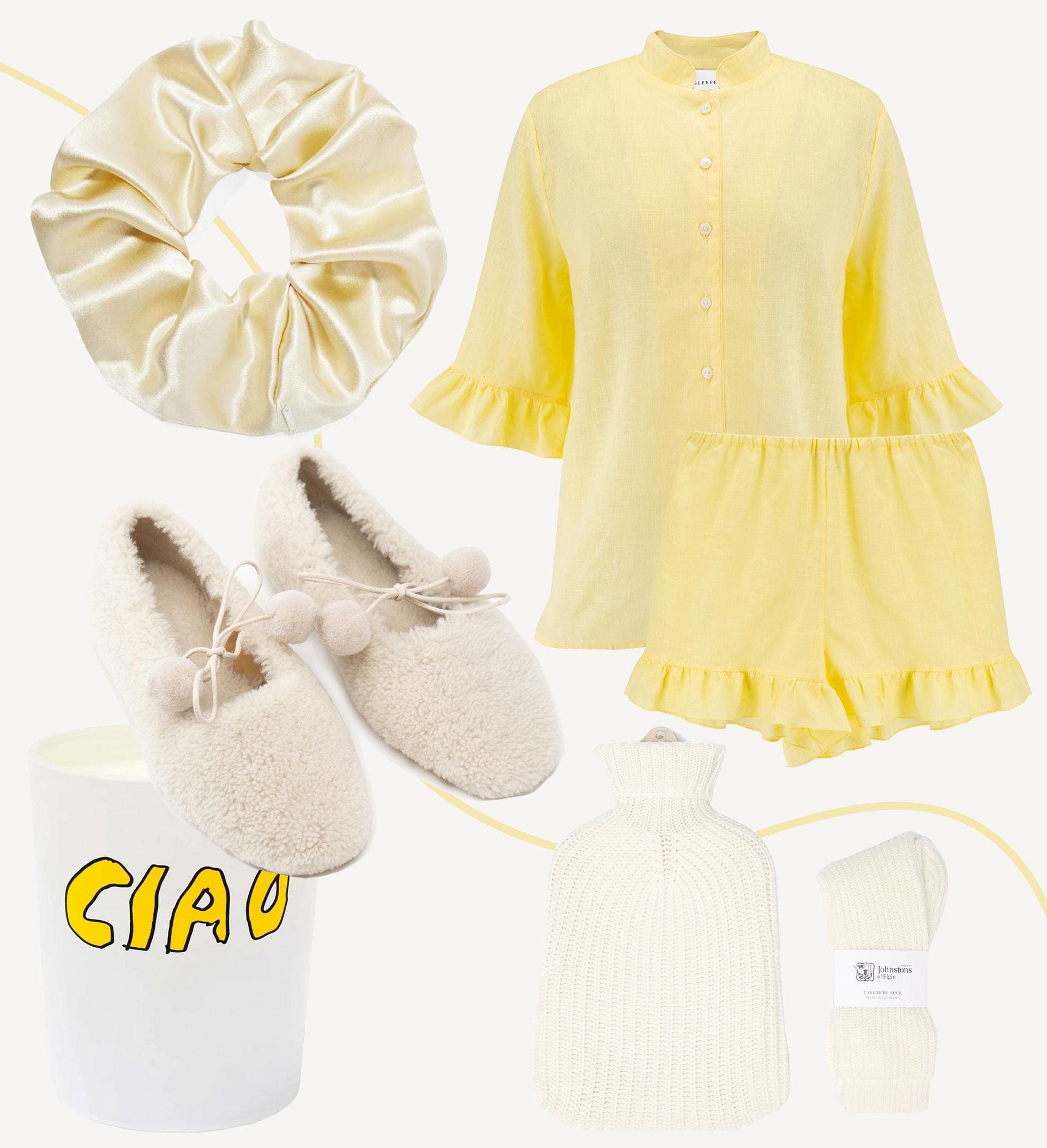 You may have already seen, or indeed own, a pair of Sleeper pyjamas – the brand’s feather trimmed two-pieces have been loved and lauded on Instagram, with many opting to wear them as alternative New Year’s Eve and Christmas Day outfits last month. The brand’s linen sets are equally cute; wear indoors now with a pair of Sleeper’s sheepskin slippers and a Johnston of Elgin cashmere water bottle, and outdoors with sandals and a wicker bag when the weather warms up.