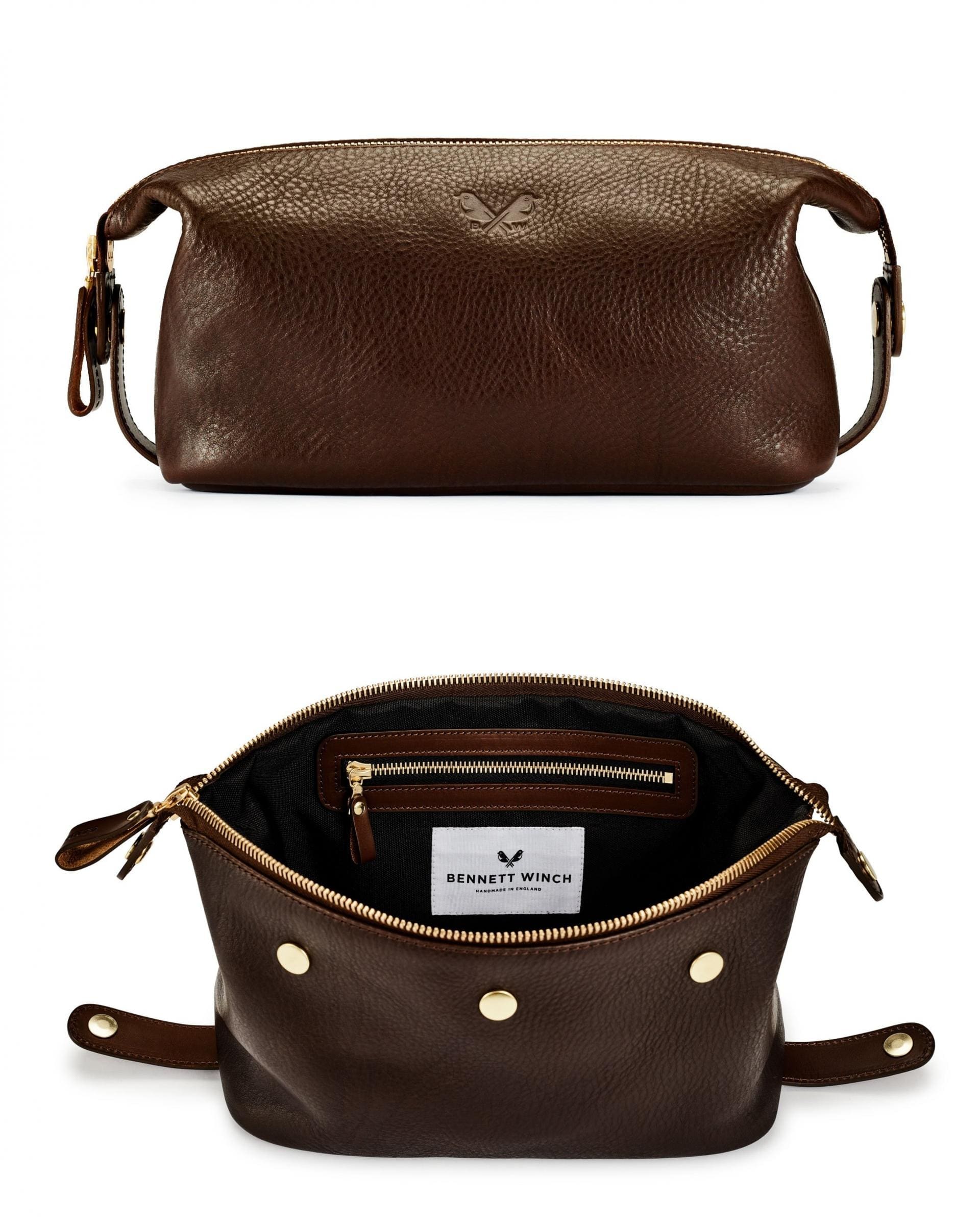 Featuring a clip out wet compartment for storing beard clippers or razors, this made in England wash bag also carries a zip secured internal pocket. With a wide opening for easy access and Swiss RiRi zippers to secure all of your toiletries, the Bennett Winch wash bag is the ultimate ally for carrying your essentials, coming fully lined in Italian nylon and crafted from the finest full-grain Tuscan leather.
