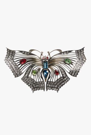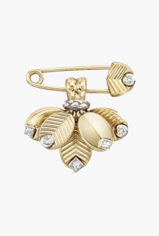 This ‘expressive approach’ is indicative of a significant mood shift in fashion, after several seasons of minimalism, sleek tailoring and ‘quiet luxury’. Whether it’s a vintage brooch added to update a blazer lapel, or a denim jacket paired with a diamond pin, brooches are an easy way to inject an outfit with personality.