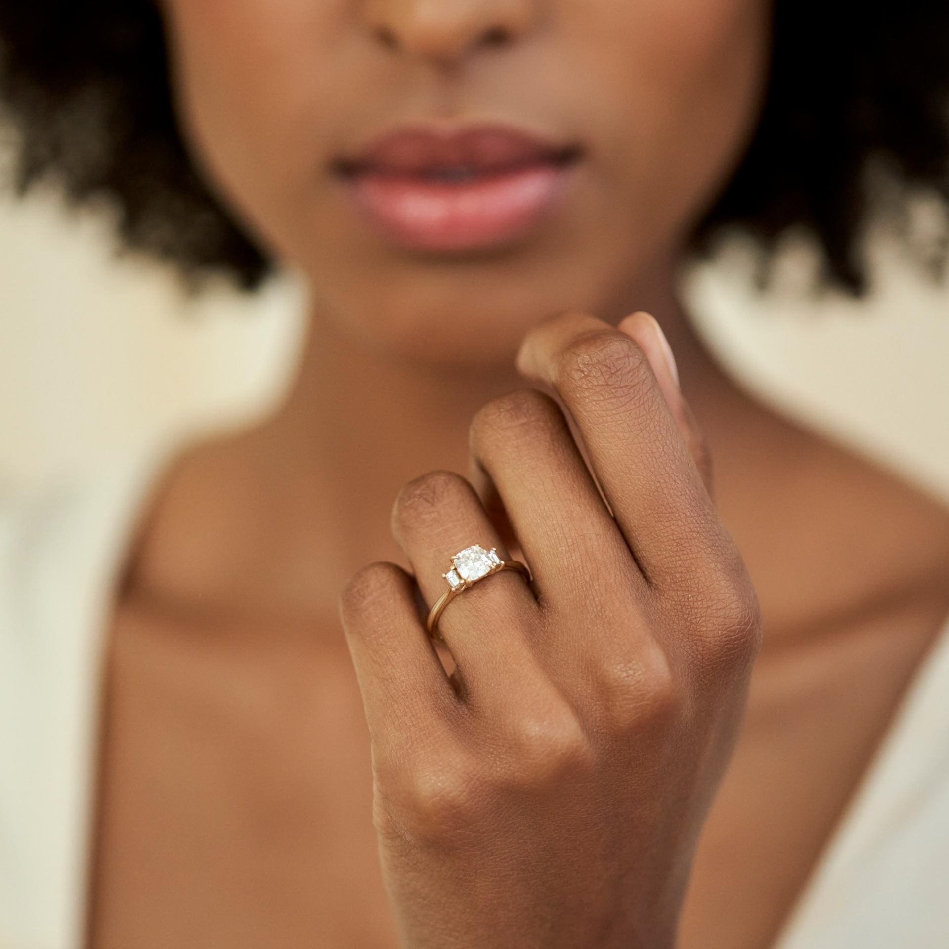 A cushion-cut diamond ring is a beautifully soft, classic setting. Inspired by a Georgian old mine cushion cut ring, this modern iteration features a glittering lab-grown centre stone.