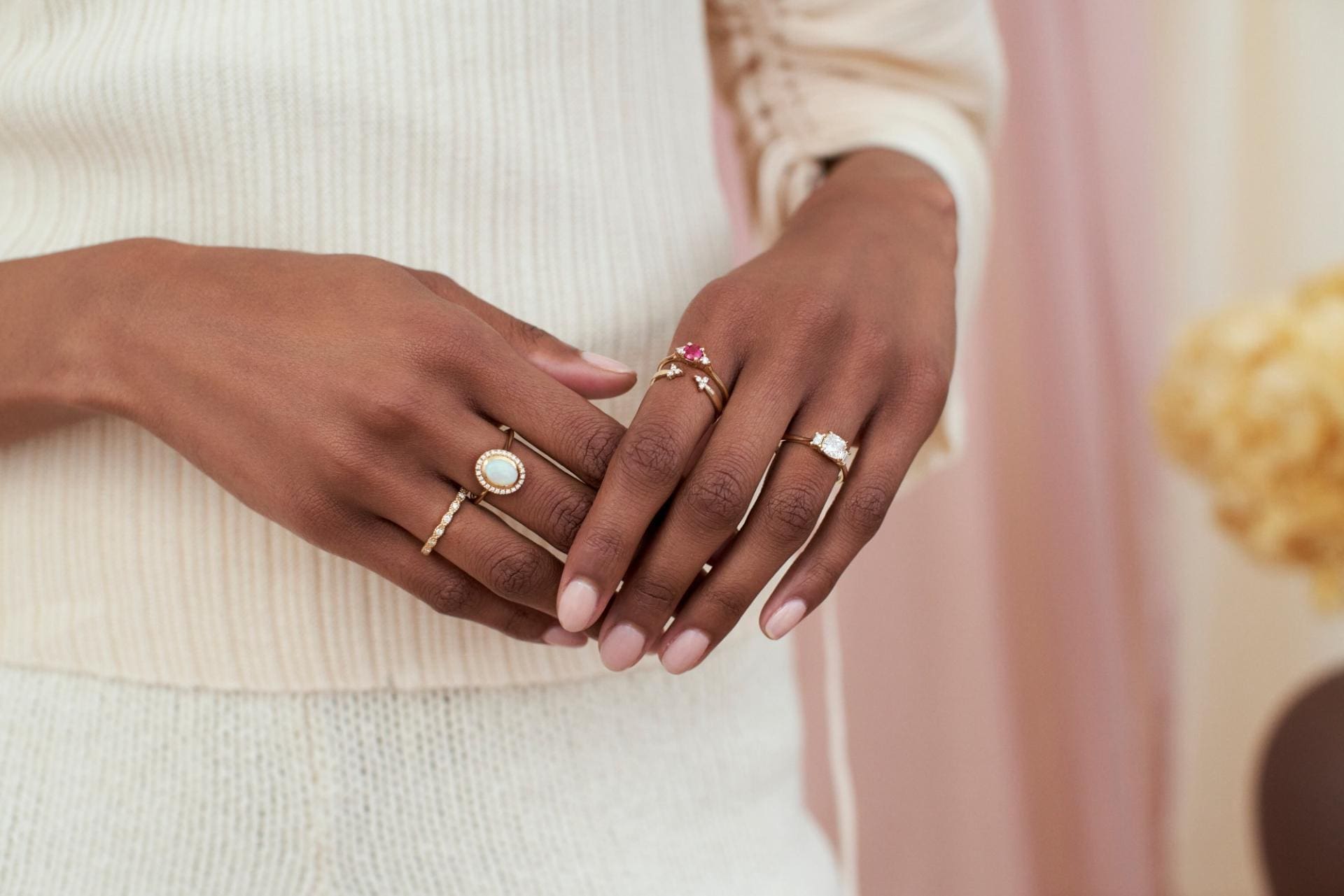 “I adore a curated stack of rings. Each one represents a significant moment in my life, from achieving a professional goal to the birth of my daughter Aya, last year,” comments Sweetman. “It was her first birthday in June and I currently have my eye on a beautiful diamond eternity band to mark the date, which she will eventually inherit. We are the first generation of women to buy our own diamonds, and I adore the idea of minding a precious piece that will one day be hers.”