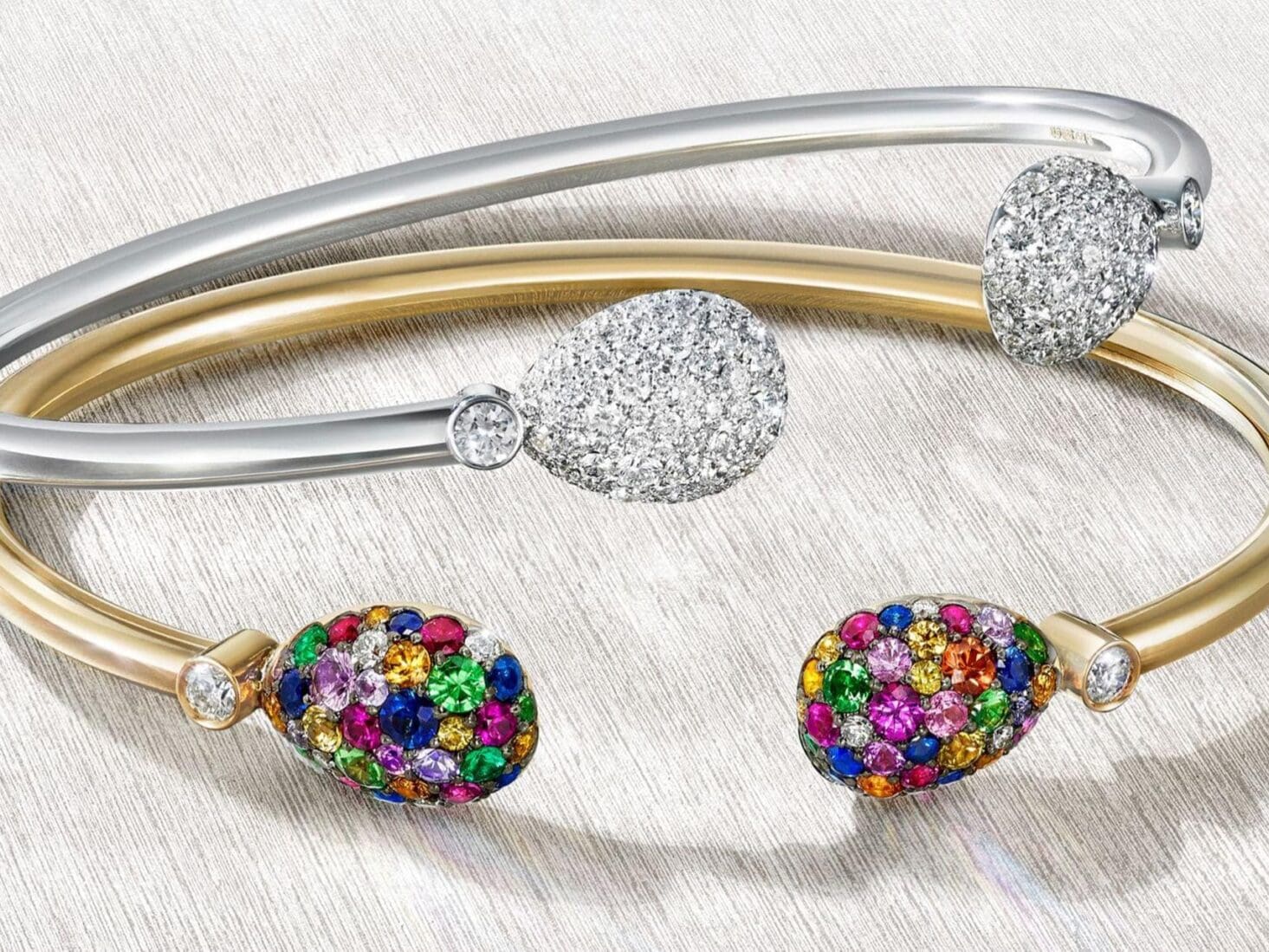 Fabergé’s new collection of stackable fine jewellery bangles is flourished with diamonds and vibrant gemstones