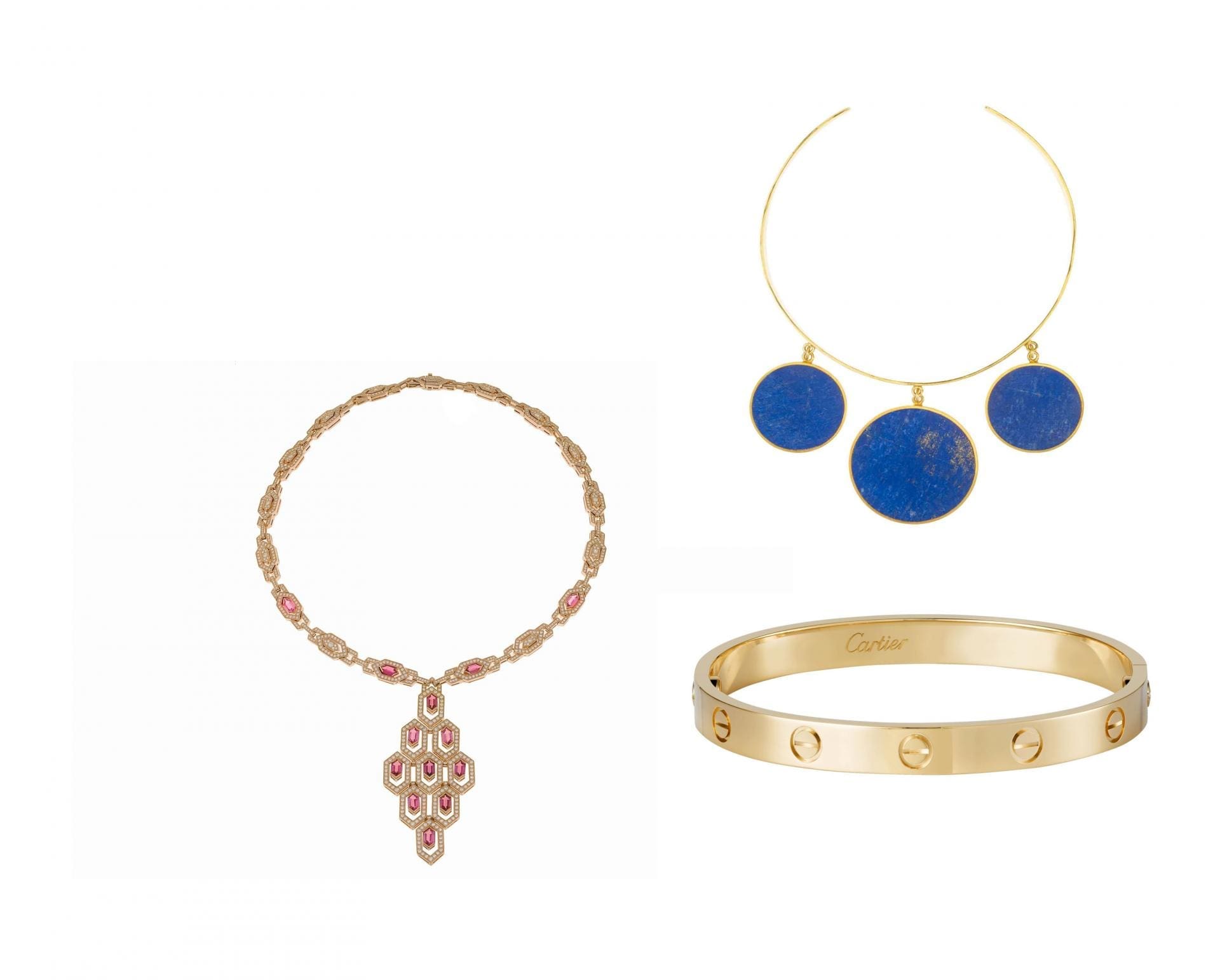 Seventies stalwarts like Bulgari continue to hold court, sparking Saturday night fever with spectacular new Serpenti Seduttori jewels, set with vibrant pink tourmalines. Van Cleef & Arpels’ Alhambra collection, a hallmark of the 1970s, remains hugely popular and is available in a spectrum of shimmering hues.