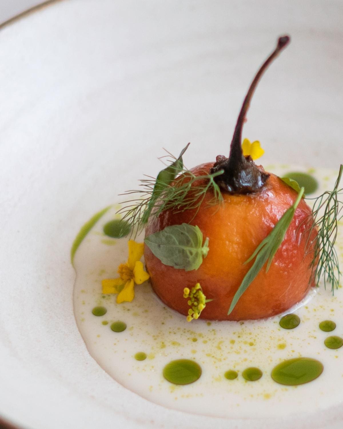 What Ollie and his team began in the late Dabbous has been, if anything, augmented and escalated. These are small dishes of dexterity, wit and aesthetic allure which consistently manage to show off ingredients to their best advantage.