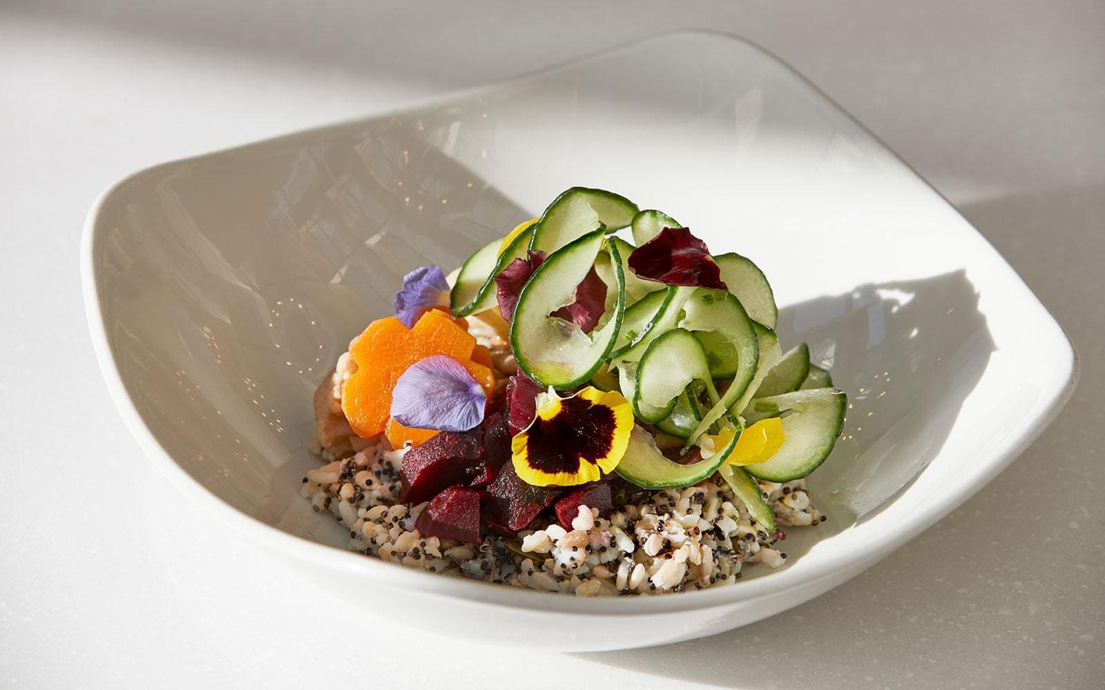 The space is home to a sophisticated bar serving a regularly rotating menu of cocktails and snacks, as well as a Michelin Green Star-holding casual brasserie helmed by head chef Keir Barry, boasting a seasonal, modern all-day menu centred around the deep smoky flavour achieved by cooking over charcoal on a Josper grill. The star of the show, however, is the restaurant, where executive head chef Jeremy Bloor serves up classic afternoon teas alongside contemporary a la carte and tasting menus foregrounding fine British produce. Accompanied by fine wines carefully selected by head sommelier Diego Muntoni, highlights from the new spring menu include slow cooked pork belly with miso caramel and charred turnips and wild bass with English squid primavera, tomato and lemongrass broth.