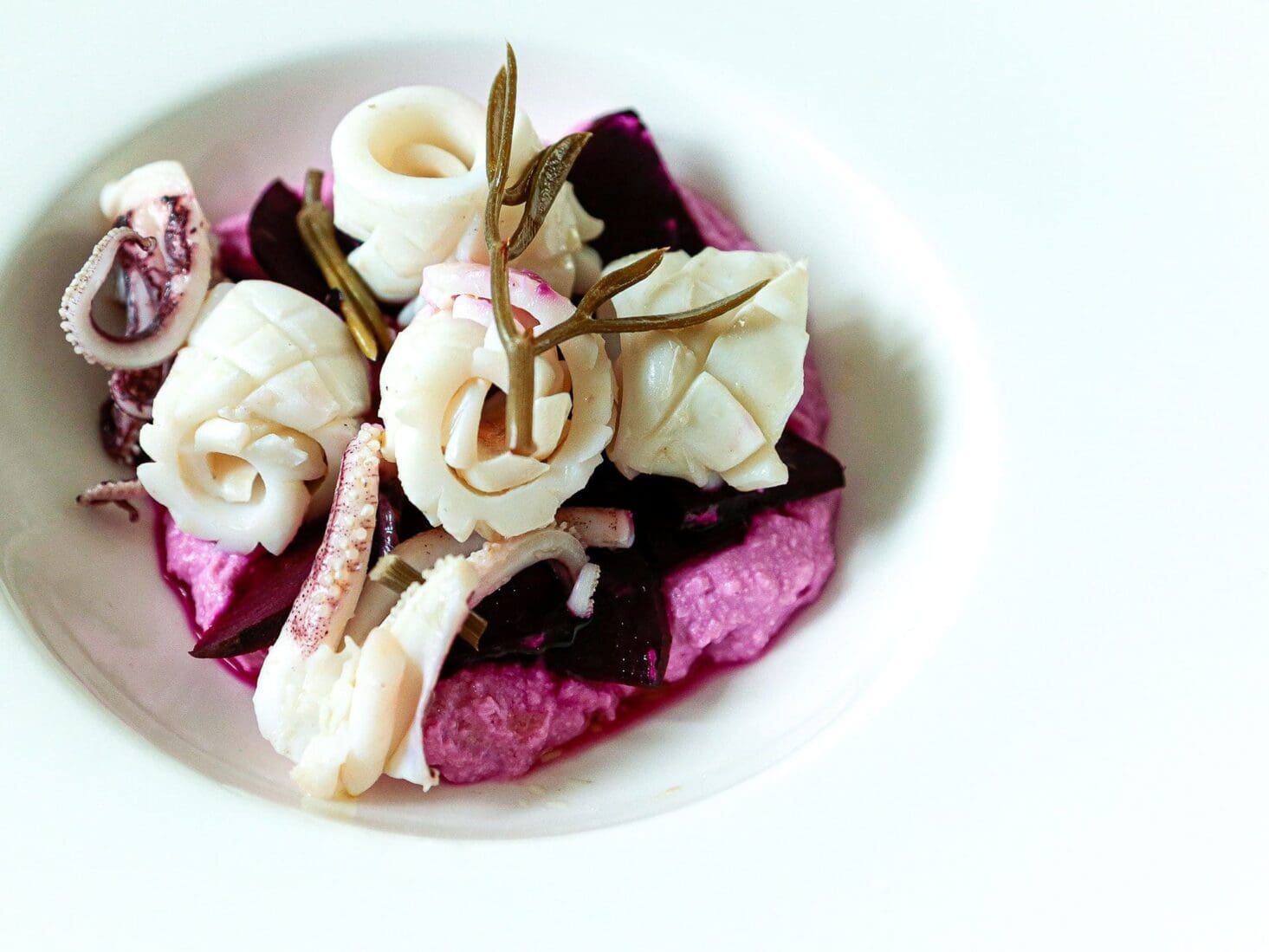 Borgo Egnazia’s squid with beetroot and goat’s milk ricotta