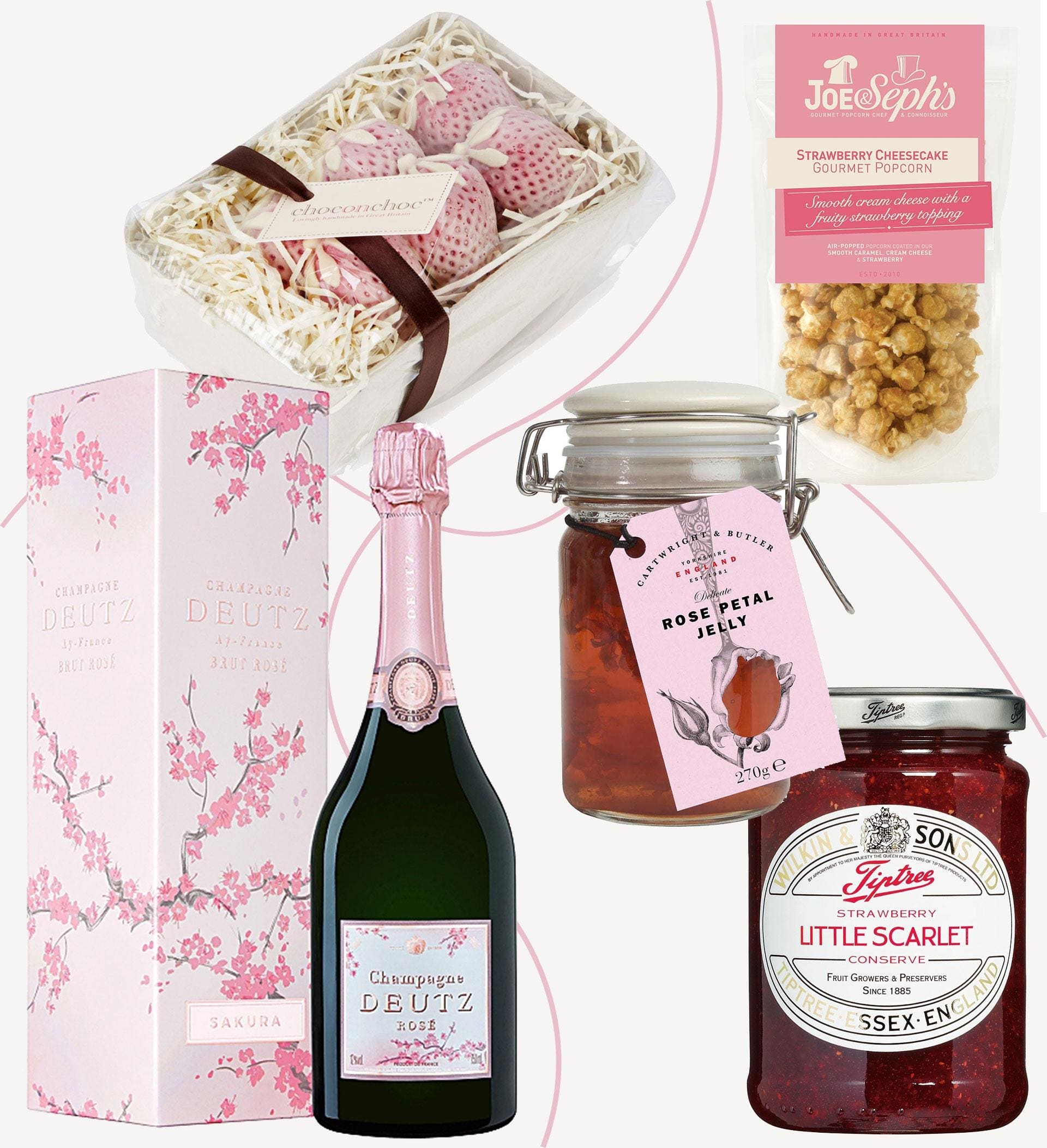 Every afternoon tea needs strawberry jam – and every Englishman will agree that Wilkin & Sons Tiptree jam is the best. For that five-star appeal, however, also serve some rose petal jelly. It’s a favourite at the Mandarin Oriental Hyde Park. Tradition satisfied, offer up a modern wist in the form of Joe & Seph’s strawberry cheesecake popcorn and Choconchoc’s white chocolate strawberry punnet. And to drink? Nothing says celebration like a glass of Deutz rosé champagne.