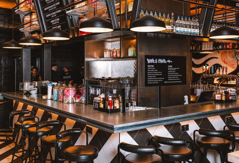 Straight out of New York, Black Tap has landed in London with all the attitude you’d expect from the chain that made milkshakes go viral. The Stratford and Soho sites both deliver their signature craft burgers – think the All-American with cheese and special sauce, or the Wagyu Steakhouse stacked with pepper jack and crispy onions – alongside fried pickles, loaded fries and wings. The real show-stoppers, though, are the CrazyShakes: piled high with everything from Jammy Dodgers to slices of cake, they’re as outrageous as they are photogenic.