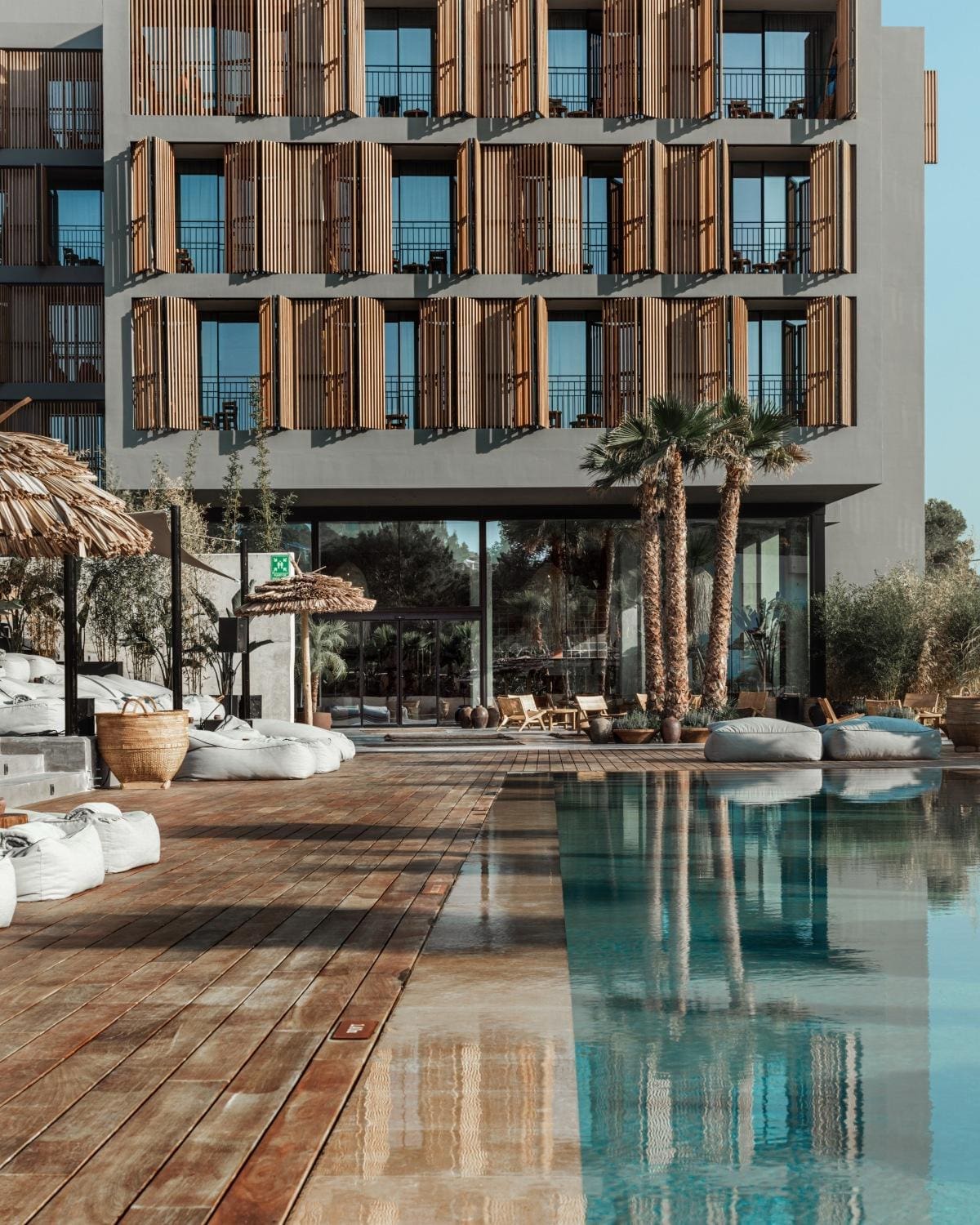 Not that you should think of Oku Ibiza simply as a change in the name above the door – I just wanted to explain how we got here. Casa Cook Ibiza was only half-finished when it half-opened in 2019. Local architects MG&AG studio had artfully re-rendered an existing building in smooth concrete and cedar-wood latticing. The rest of the project, including a six-storey new-build where breakfast is now served, was constructed in the winter of 2020. Say what you will about Spanish builders, but they got the job done in just two months. Oku, for all intents and purposes, is a brand new hotel. And it hit the ground running.