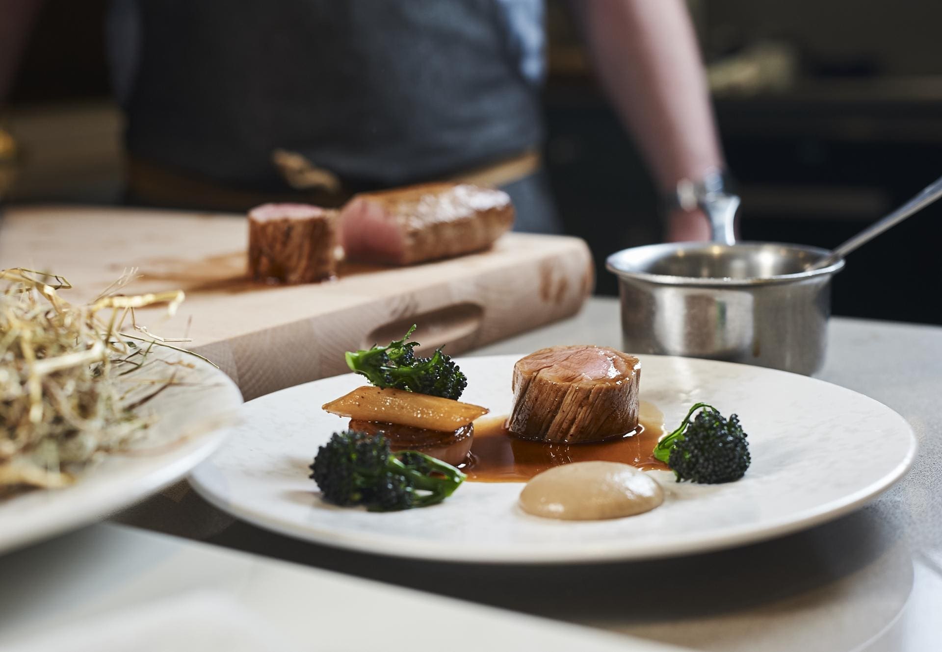It takes a certain calibre of chef to handle this level of interaction while preparing a total of 96 dishes plus some ‘surprises’; there’s a full house the evening we visit. Eight of the diners are staying at Dormy House, two at The Fish (its sister hotel), two are locals and the mood is lively; among us we are celebrating two birthdays, two pregnancies and one couple enjoying a first night away from their young children.