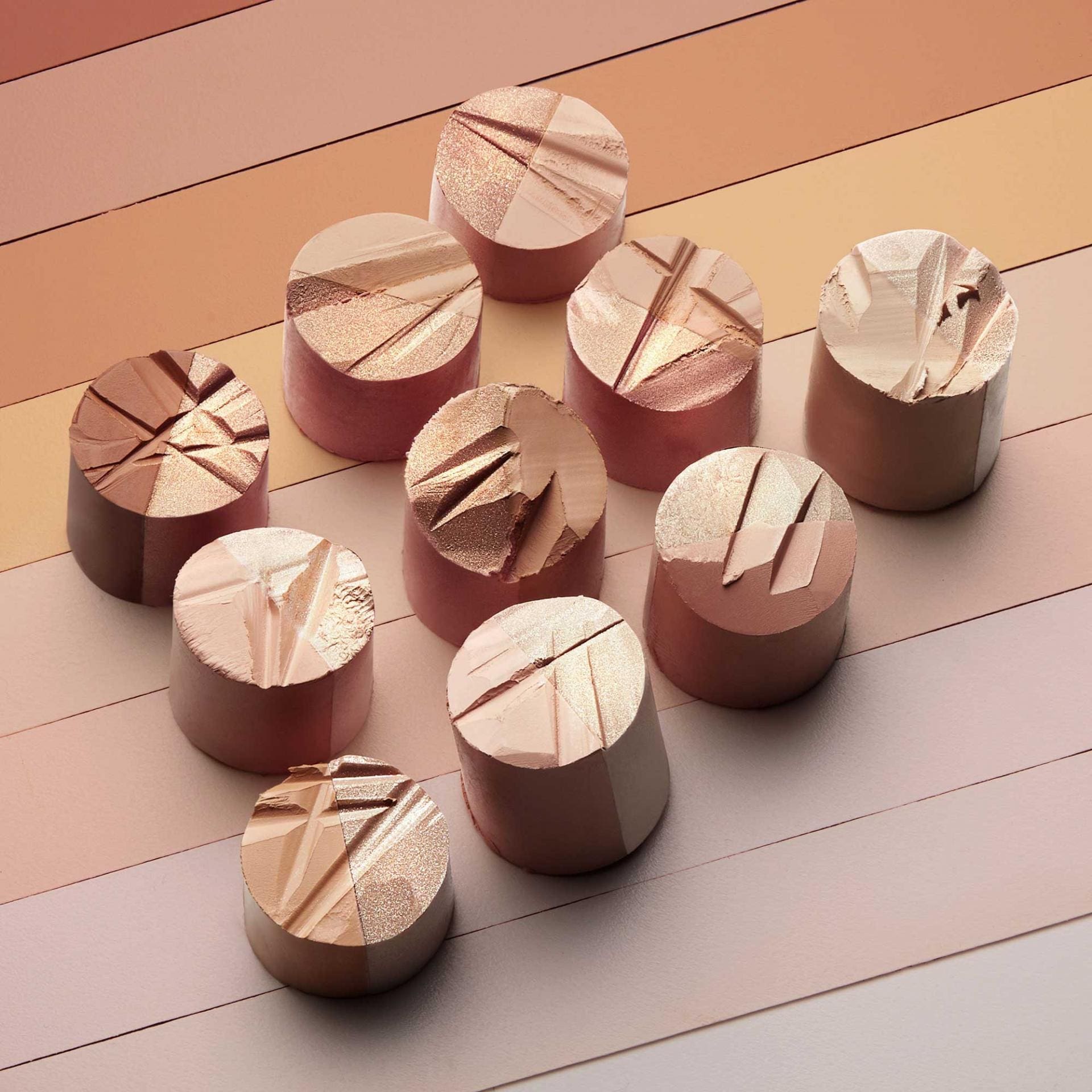 I’m wearing a lab coat as I use a long-handled, spatula-like spoon to scoop up 2.5g of shimmering, pale gold pigment before pressing and packaging it. I feel as though I’m back at school, but I definitely didn’t leave any science lessons with my own bespoke eyeshadow palette. Just five minutes ago, I used an iPad to choose my colours – one can make powders, blushers, bronzers, highlighters or eyeshadows and there are more than 5,000 possible combinations – before the ‘recipe’ was printed and a beauty consultant guided me through the pigment pressing process.